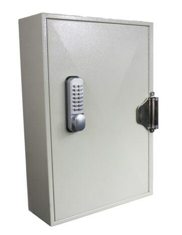 SELF CLOSING: A range of KeySecure cabinets offering a self closing door facility – supplied as standard with high quality slam shut mechanical digital lock, with option of key override. Suitable in Car/Van Dealerships, Garages, Estate Agents for large Bunches of Keys and Transponder Keys. Extra Deep Cabinets and Extra Spaced Hooks Ensures Neat and Tidy Identification.