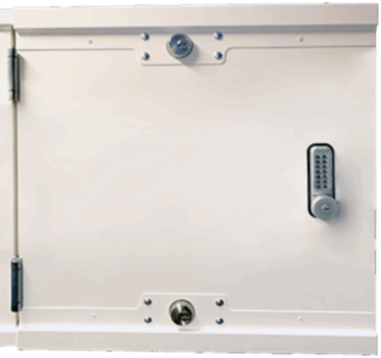 - The high-security key cabinets are supplied with hardened reinforced steel at all entry points and top and bottom armoured security locks which have a reinforced case.